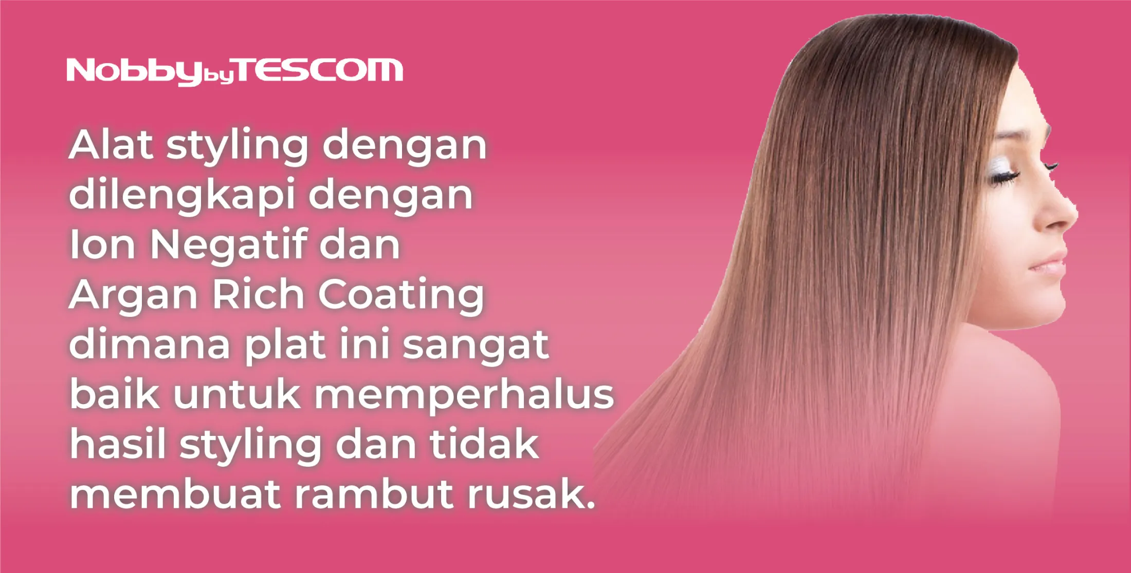 Tescom Hair Straightener merupakan salah satu rekomendasi catokan rambut yang dibuat dengan pelat Ion Negatif dan Argan Rich Coating untuk memperhalus tampilan rambut dan tidak membuat rambut rusak.