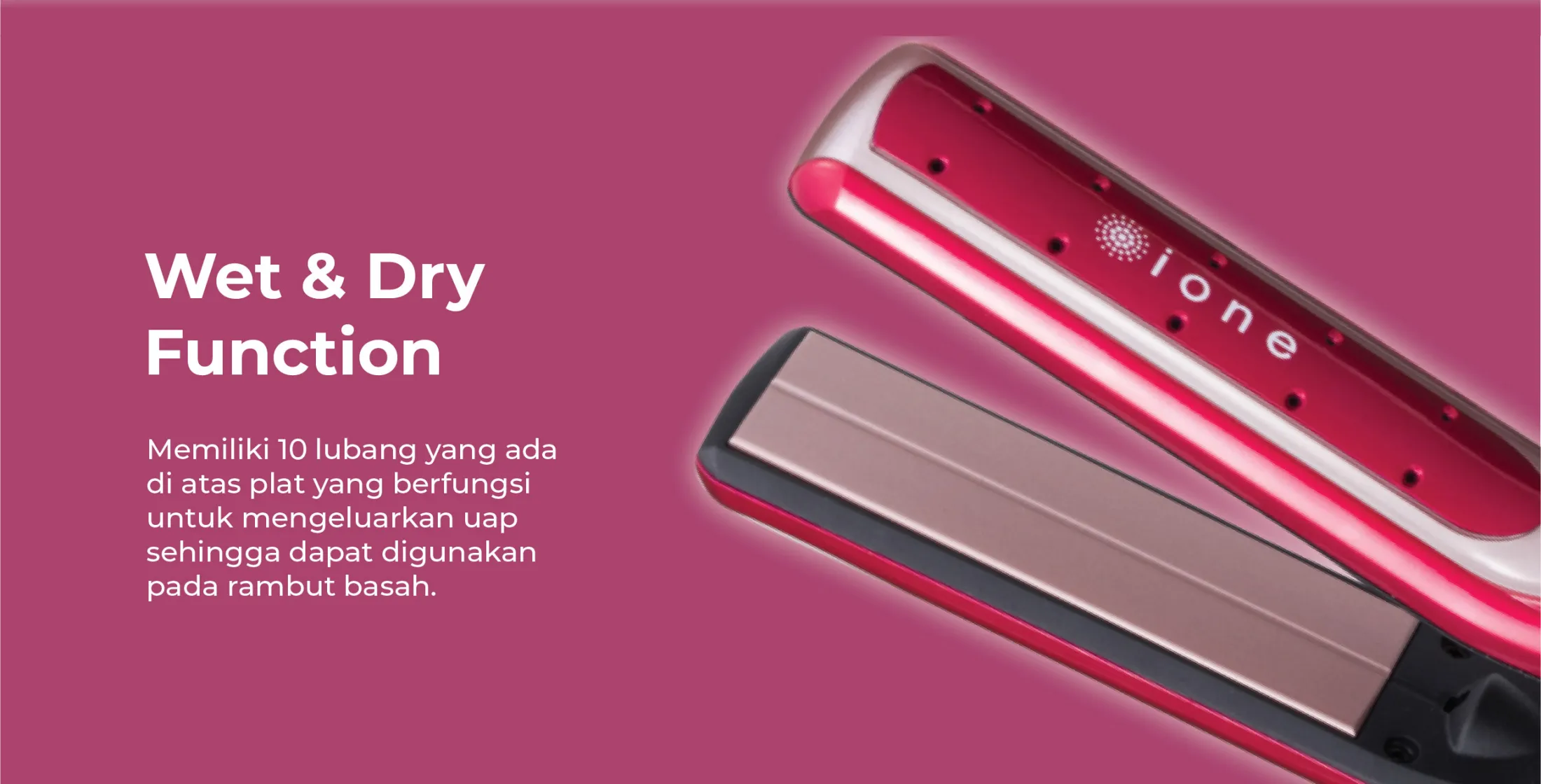 Selain itu, ada 10 lubang di atas pelat yang berfungsi untuk mengeluarkan uap sehingga catokan bisa digunakan saat rambut basah ataupun kering.